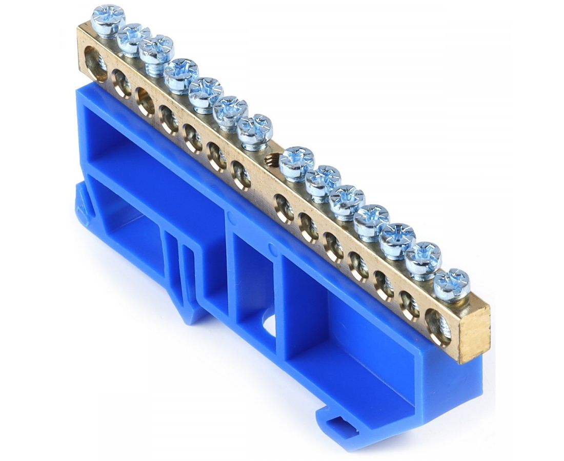 Smartbuy Шина N Ноль (нул.) (латунь) 6х9мм, синий изолятор на DIN-рейку, 14 отв. SBE-bc-14-dr