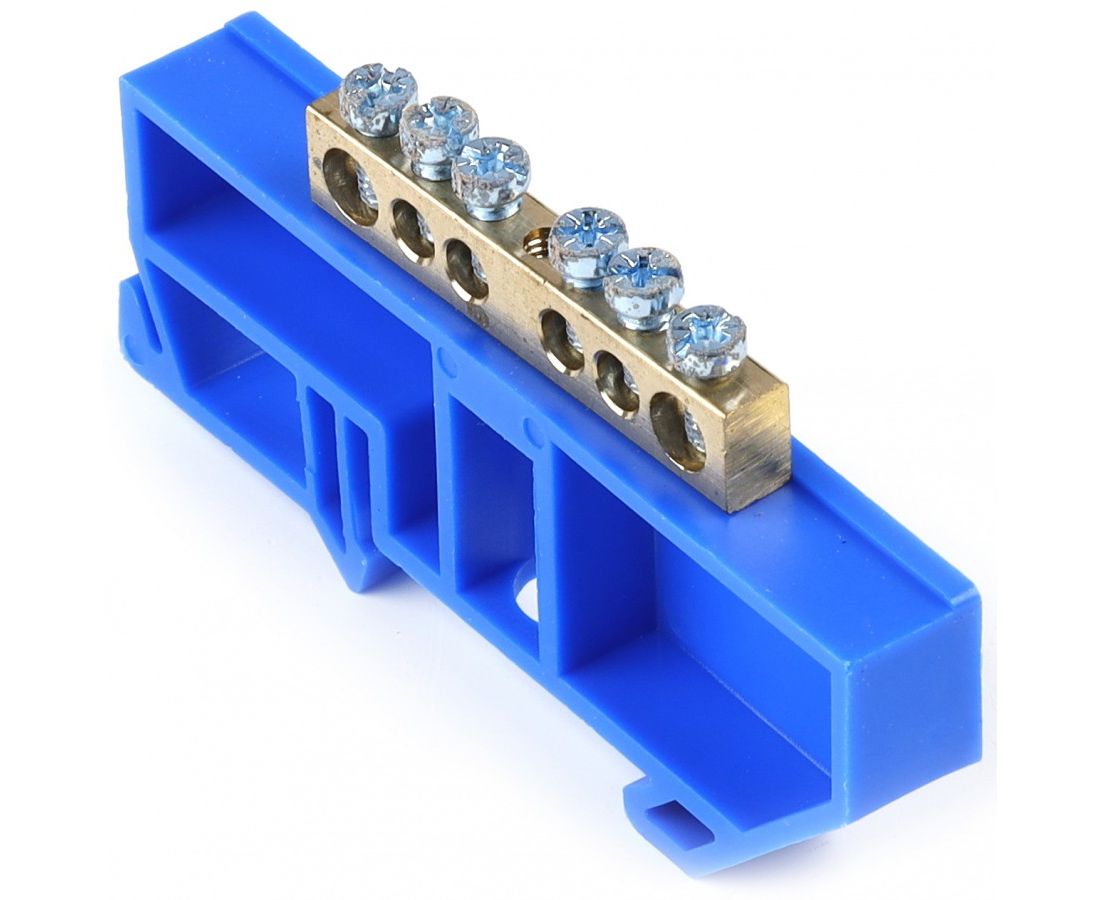 Smartbuy Шина N Ноль (нул.) (латунь) 6х9мм, синий изолятор на DIN-рейку, 6 отв. SBE-bc-6-dr