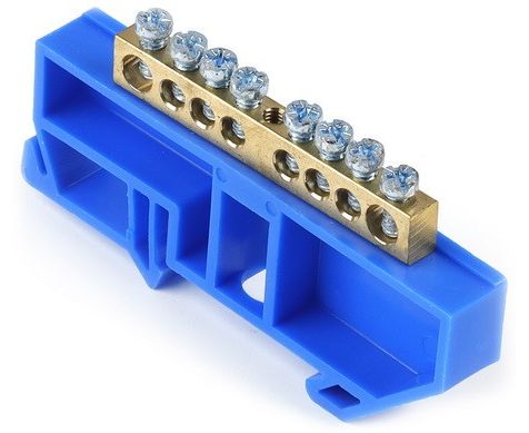 Smartbuy Шина N Ноль (нул.) (латунь) 6х9мм, синий изолятор на DIN-рейку, 8 отв. SBE-bc-8-dr