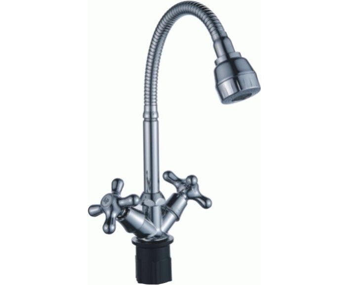 Эверест Смеситель для кухни (Zn) гибкий гофрированный излив, двухвентельн, гайка, хром, B58-340M (!)