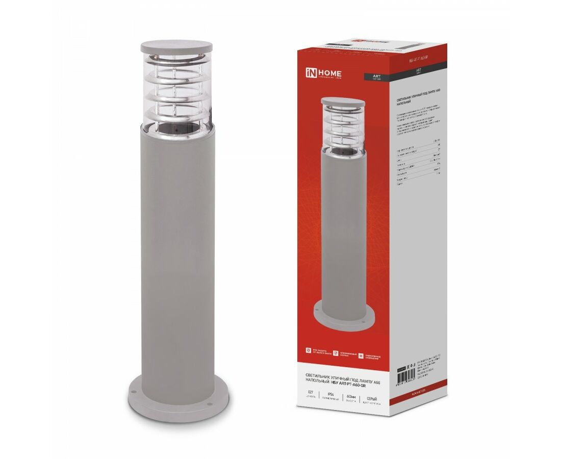 ASD/InHome св-к уличный/садовый напольный НБУ ART-PT-A60-GR А60 E27 600мм алюминий/серый IP54 8505