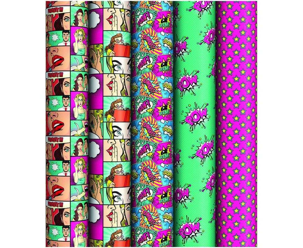 Упаковочная бумага глянц. 70*100см, ArtSpace Pop art, 90г/м2, ассорти 5 дизайнов Арт.324399