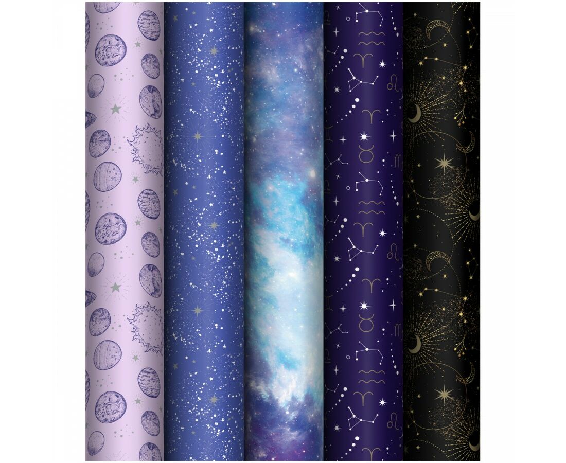 Упаковочная бумага глянц. 70*100см, MESHU В глубинах космоса, 80г/м2,ассорти 5 дизайнов Арт.358117