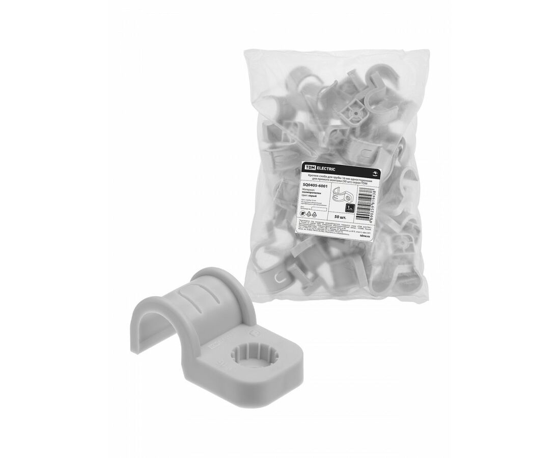 TDM скоба крепежная д/трубы 16 мм односторон д/прям монтажа (уп 50 шт, цена за шт) серая SQ0405-6001