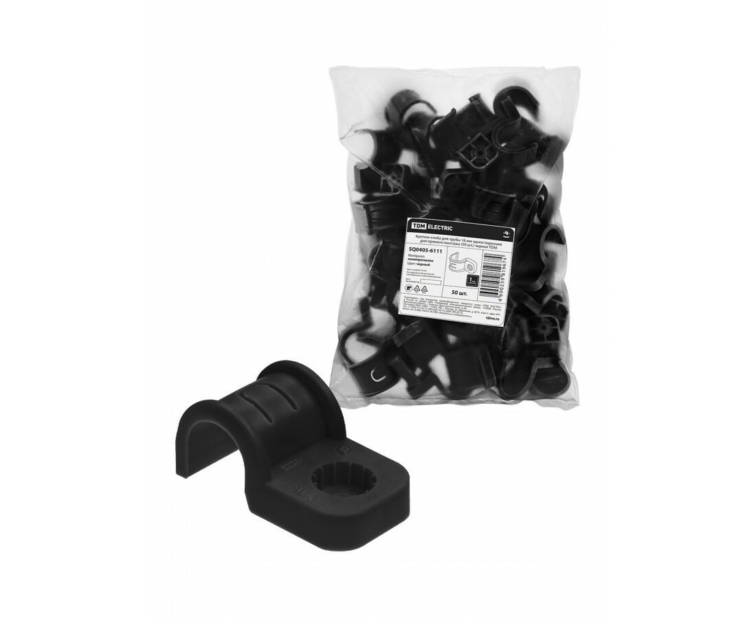 TDM скоба крепежная д/трубы 16 мм односторон д/прям монтажа (уп 50 шт, цена за шт) черн SQ0405-6111
