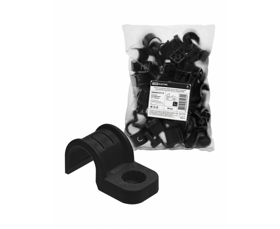 TDM скоба крепежная д/трубы 20 мм односторон д/прям монтажа (уп 50 шт, цена за шт) черн SQ0405-6112