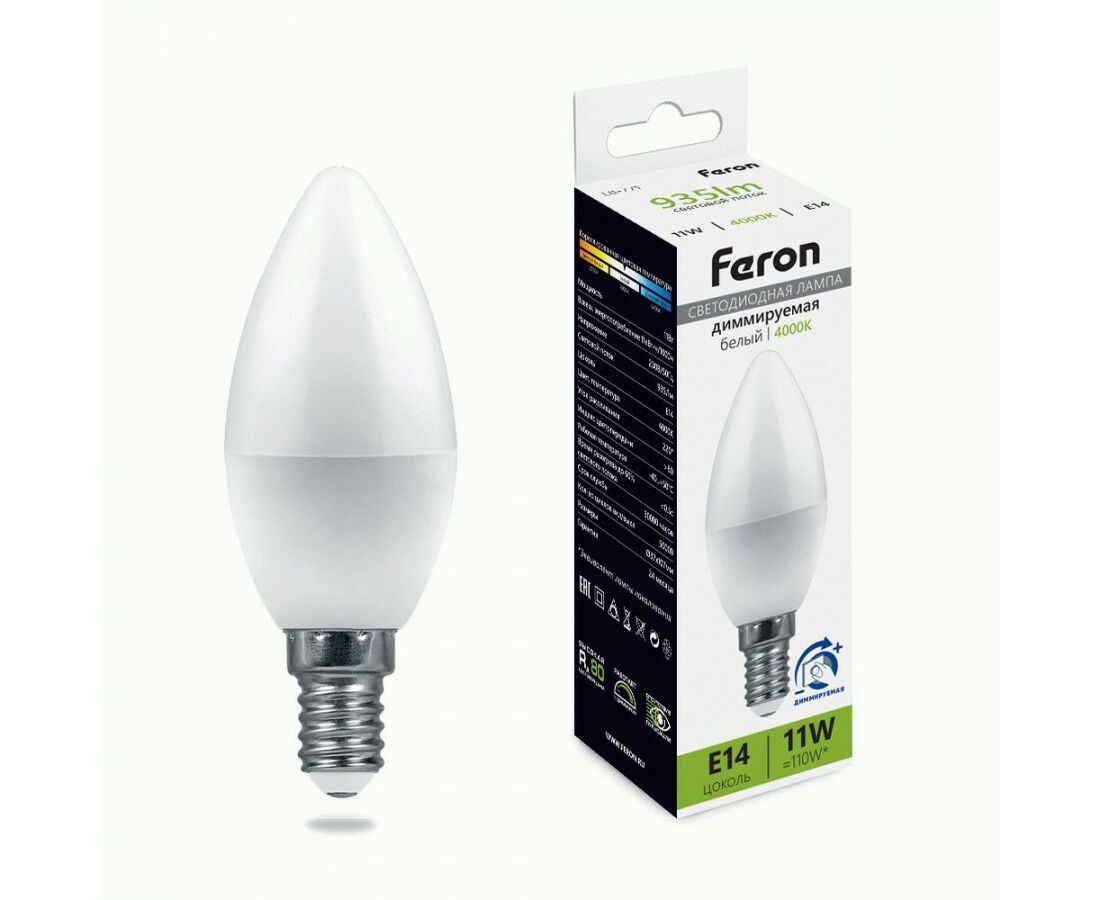 Feron лампа св/д свеча C37 диммир E14 11W(935lm) 4000K 4K матовая 114x37 LB-771 51056