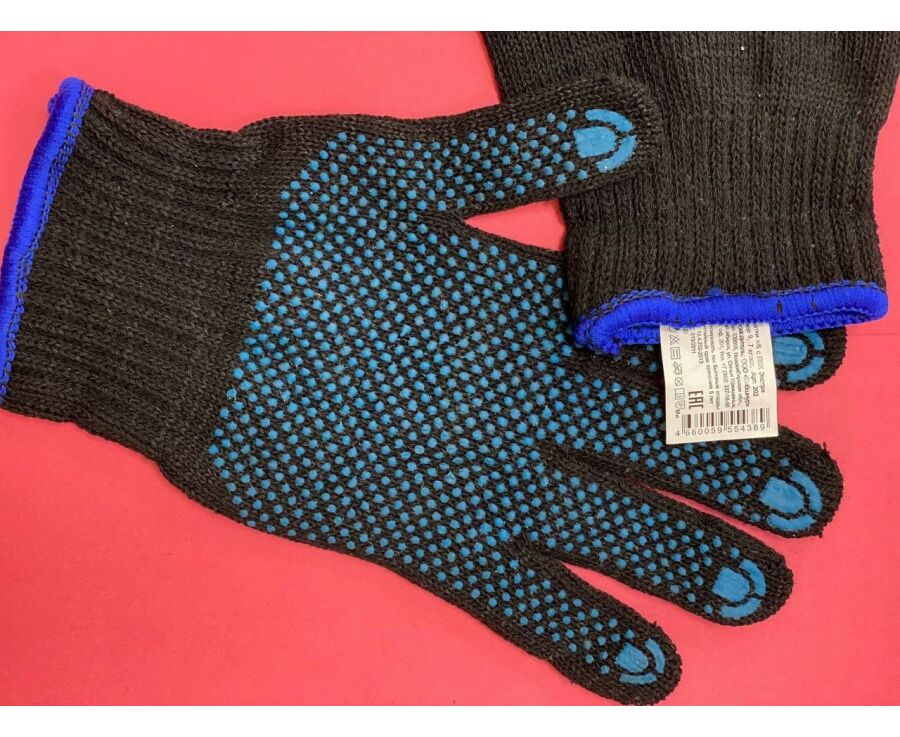 Перчатки х/б с ПВХ Экстра, 60гр, черные (р.9) 7 класс, 10пар/уп, цена за пару, 202 Сибшнур