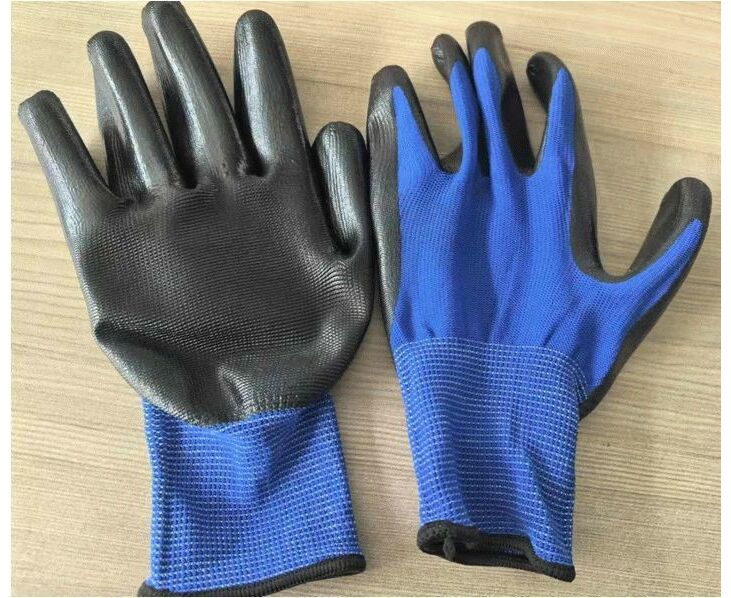 Перчатки хоз. сад. нейлон с нитрил. покрыт. полуоблив черно-синие L(р9) 1-2.sale E1M