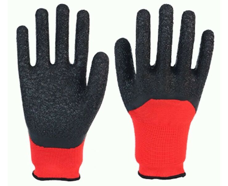 Перчатки хоз. нейлон с латекс. покрыт. Рифленые полуоблив красно-черные ХL(р10) 1-2.sale E1M