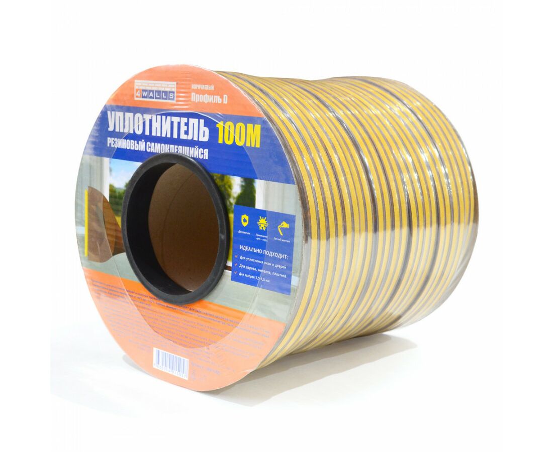 Уплотнитель D-профиль 8*9мм 4WALLS 100м коричневый резиновый самокл. арт.URK100D