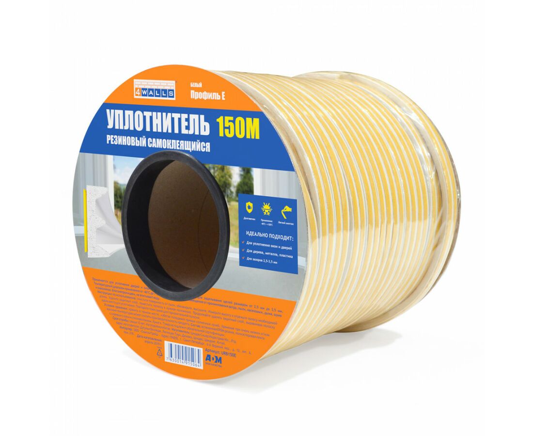 Уплотнитель E-профиль 9*4мм 4WALLS 150м белый резиновый самокл. арт.URB150E