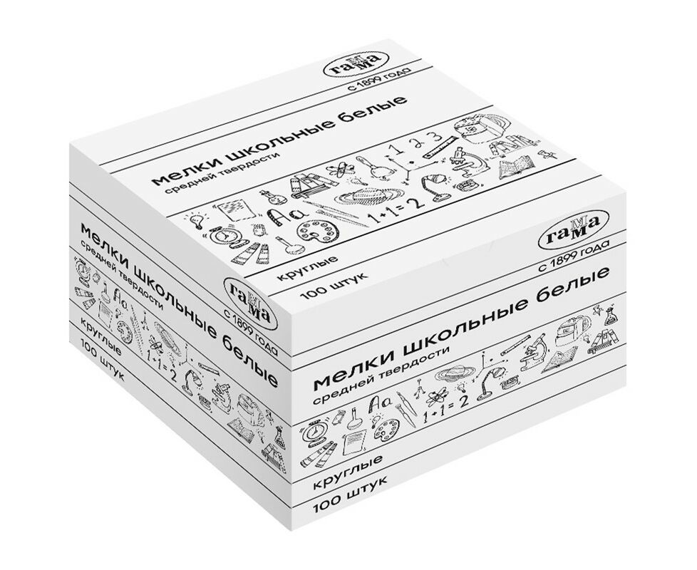 Мелки школьные Гамма, белые, 100шт., средней твердости, круглые, картонная коробка Арт.319173