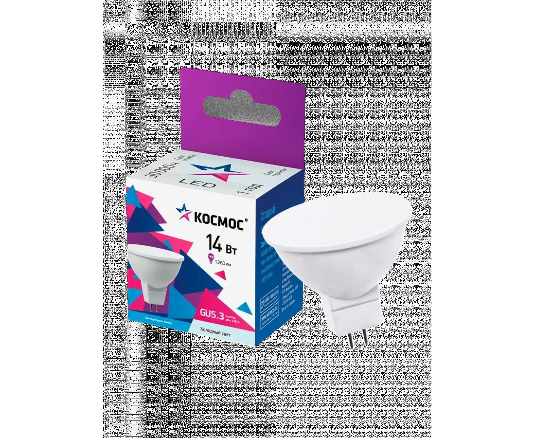 Космос MR16 GU5.3 220V 14W(1260lm) 6500K 6K матов. 55x50 LkecLED14wJCDRC65