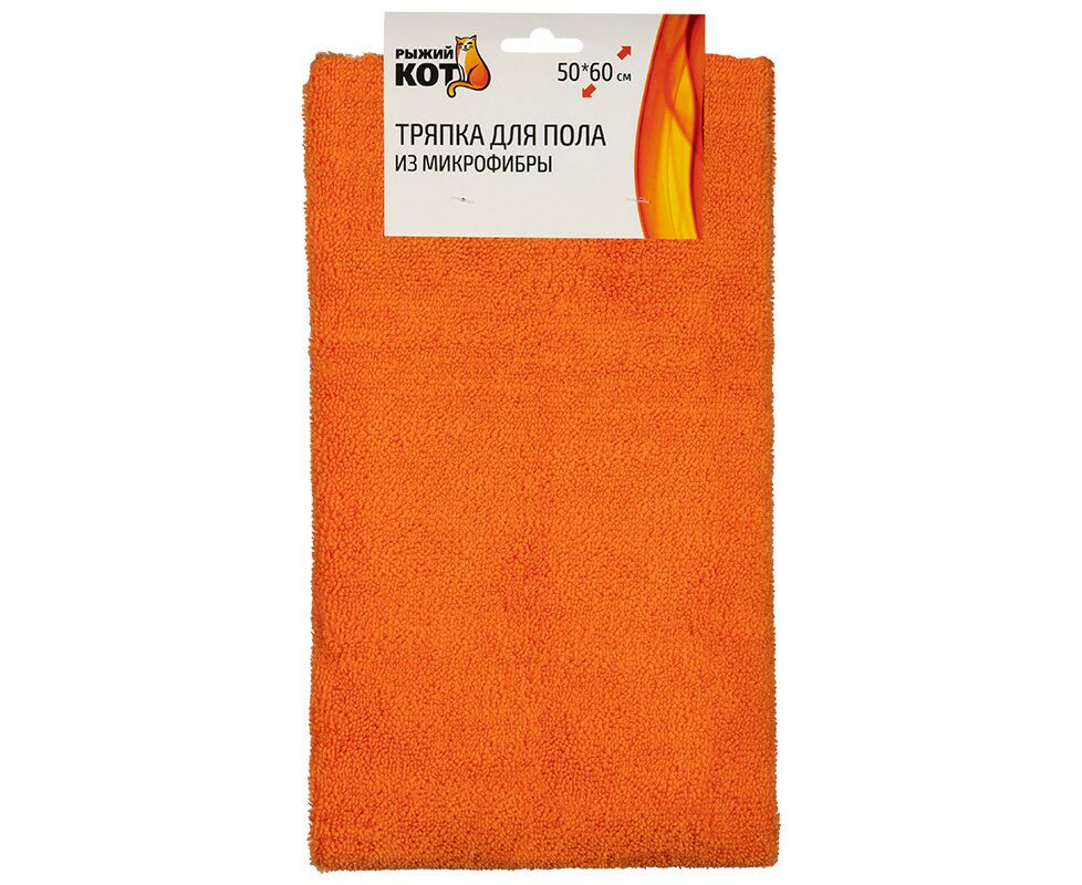 Тряпка для пола микрофибра 50*60см,220гр/м2,край волна,оранжевый,108918/ Рыжий кот
