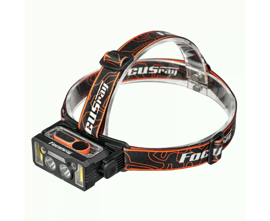Focusray Фонарь налобный 1328 4LED акк.1.2Ah 7реж. красн.свет цифр.диспл. USB чер бокс