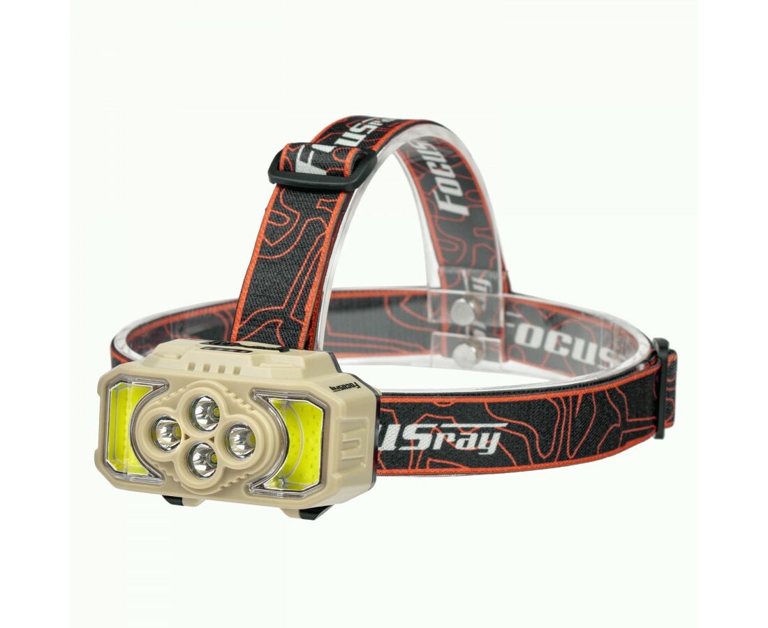 Focusray Фонарь налобный 1331 6LED акк.1.2Ah 6реж. красн.свет инд.заряда USB беж.бокс