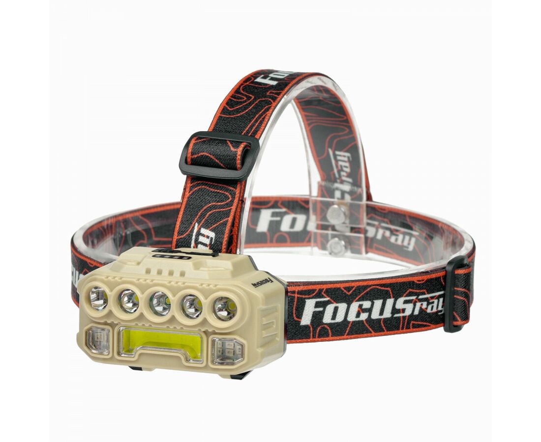 Focusray Фонарь налобный 1333 8LED акк.1.2Ah 6реж. красн.свет инд.заряда USB беж.бокс