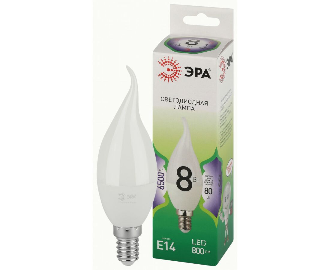 ЭРА GREEN LINE лампа св/д свеча на ветру E14 BXS 8W(800lm) 6500K 6K E14 BXS-8W GL 38x150 67138