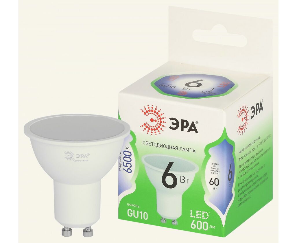 ЭРА GREEN LINE LED лампа св/д MR16 GU10 6W(600lm) 6500K 6K софит MR16-6W-865-GU10 51x88 67079