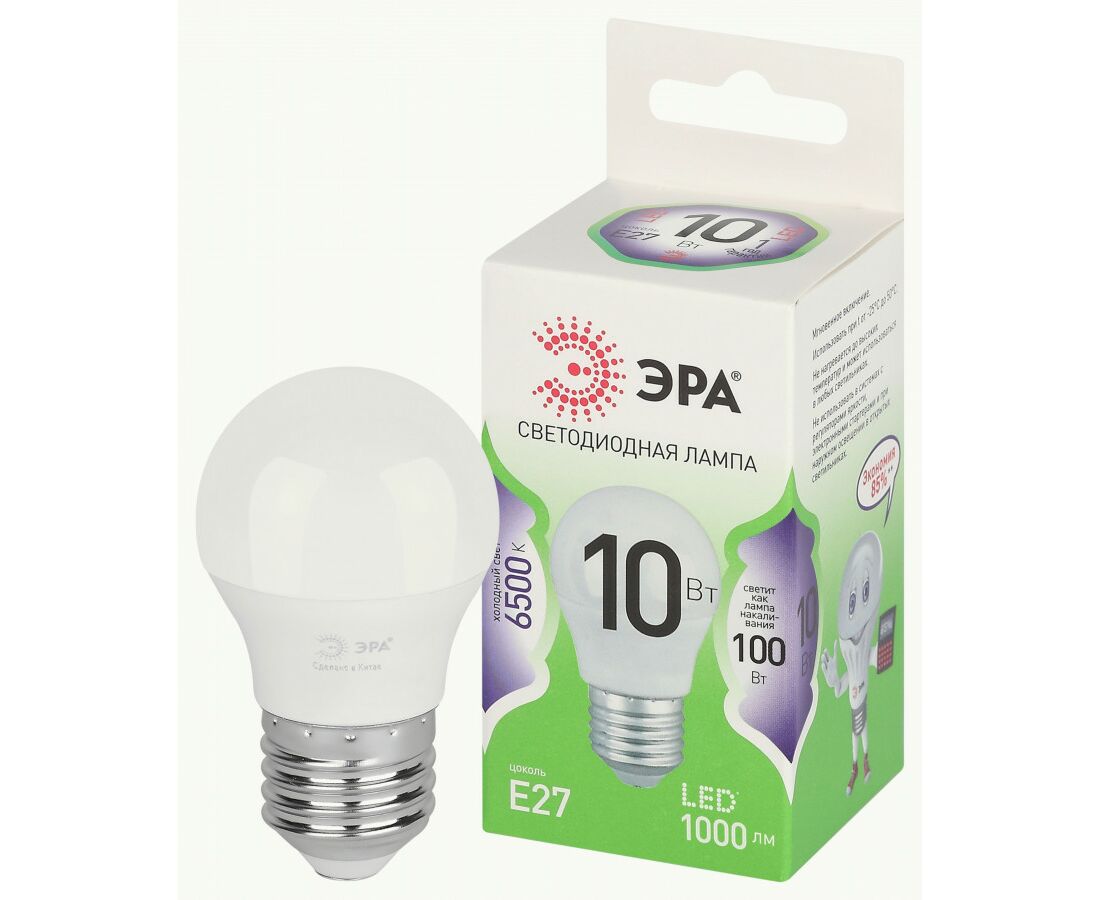ЭРА GREEN LINE лампа св/д шар P45 E27 10W(1000lm) 6500K 6K P45-10W-865-E27 46x105 67039