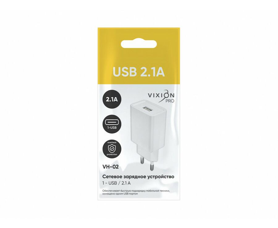 Сет. адаптер/зарядник/блок пит. СЗУ VIXION PRO VH-06, 1-USB/2.1A, белый