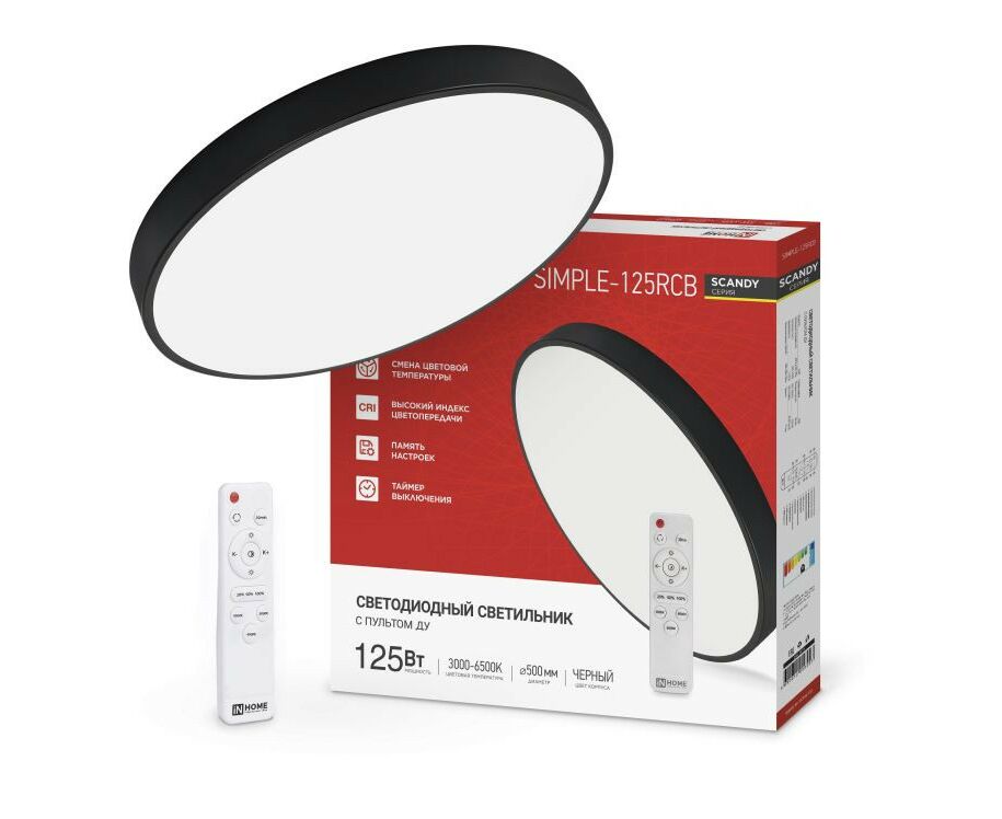 ASD/InHome св-к св/д управл 125W(10000lm) 2-4-6K d500x50 пульт ДУ черн SCANDY SIMPLE-125RCB 8993