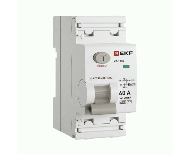 EKF PROxima выкл. дифференциальный (УЗО) ВД-100N 2P 40А 30мА, тип AC, 6кА, эл.мех E1026M4030