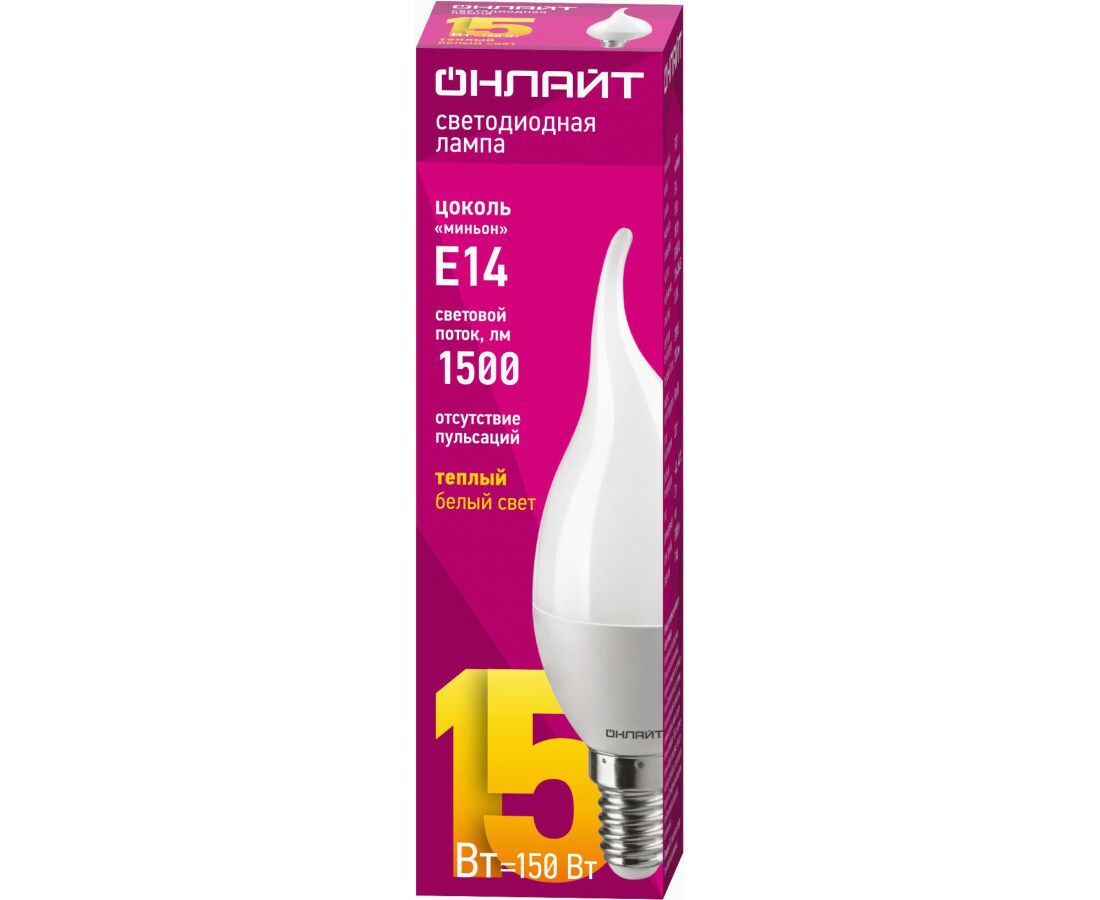 ОНЛАЙТ свеча на ветру Е14 15W(1500lm) 2700K 2K 132х37,5 OLL-FC37-15-230-2.7K-E14 90621