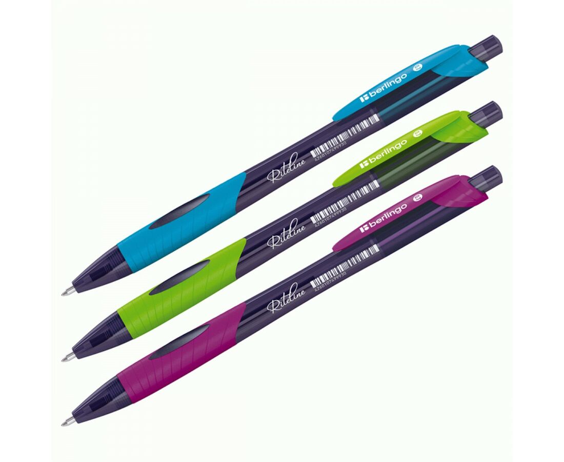 Ручка шариковая автоматическая Berlingo Riteline синяя, 0,7мм, грип, корпус ассорти арт 271154