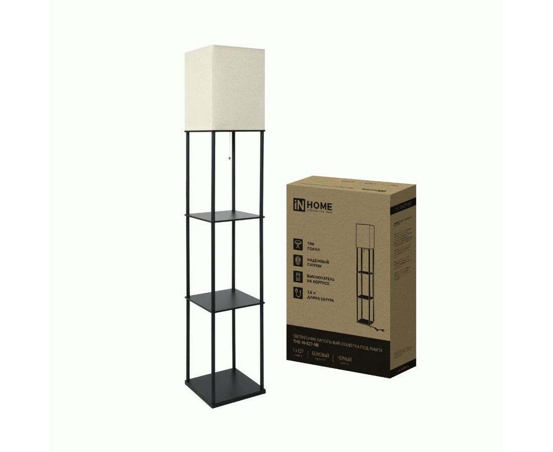 ASD/InHome св-к напольный торшер ТНО 10 60W Е27 полка бежевый/ черный 260х260х1580 4475