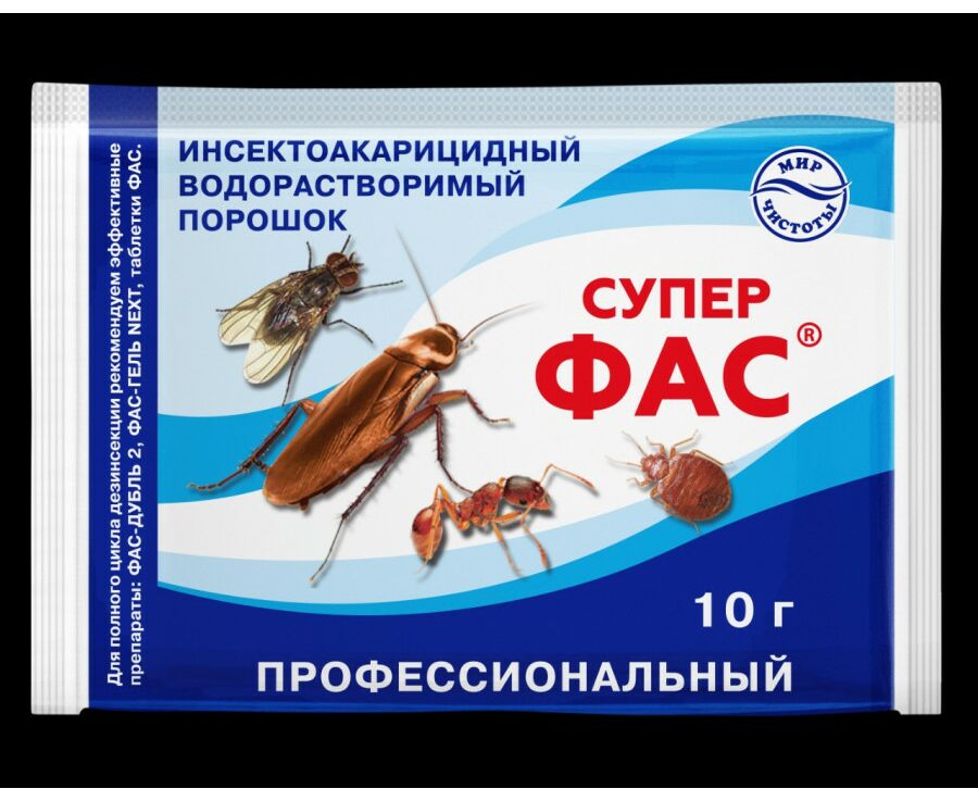Фас Супер (ДУСТ) 10гр. (проф) От тараканов/муравьев/клопов/мух/комаров (аналог 421318)