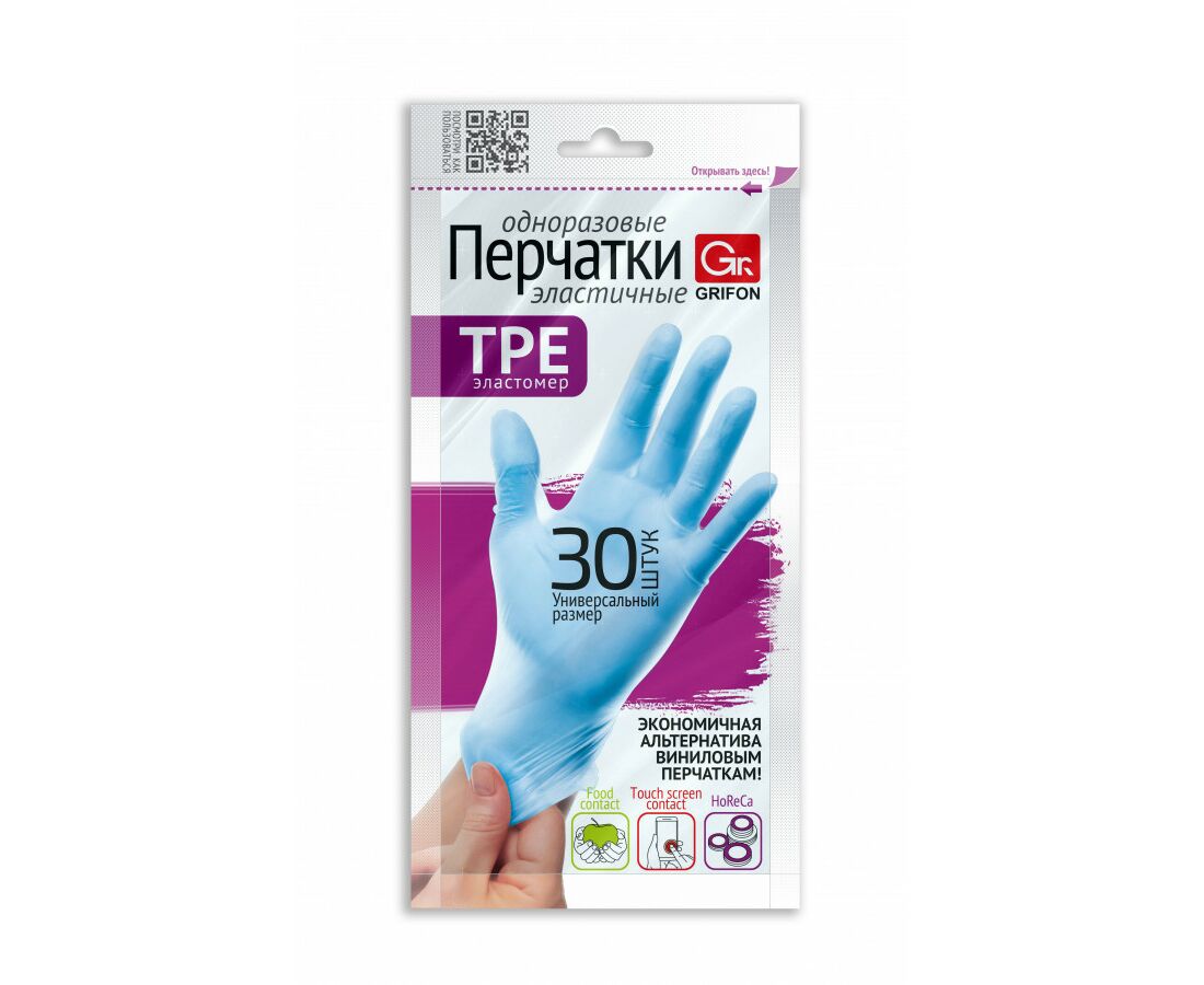 Перчатки TPE эластомер 30шт/уп,размер единый универсальный,303-044/ GRIFON