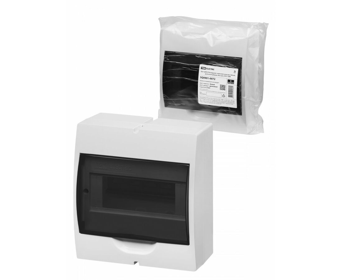 TDM бокс (корпус) пластик ЩРН-П-8 мод. навесной, дымчатая дверца, без шин, белый IP41 SQ0901-0072