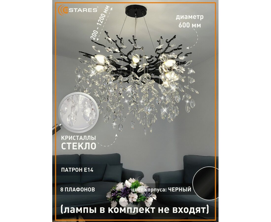 Estares св-к-люстра ROXANA 55 E14x8 600x1200 черн./кристаллы БЕЗ пульта IP20 @