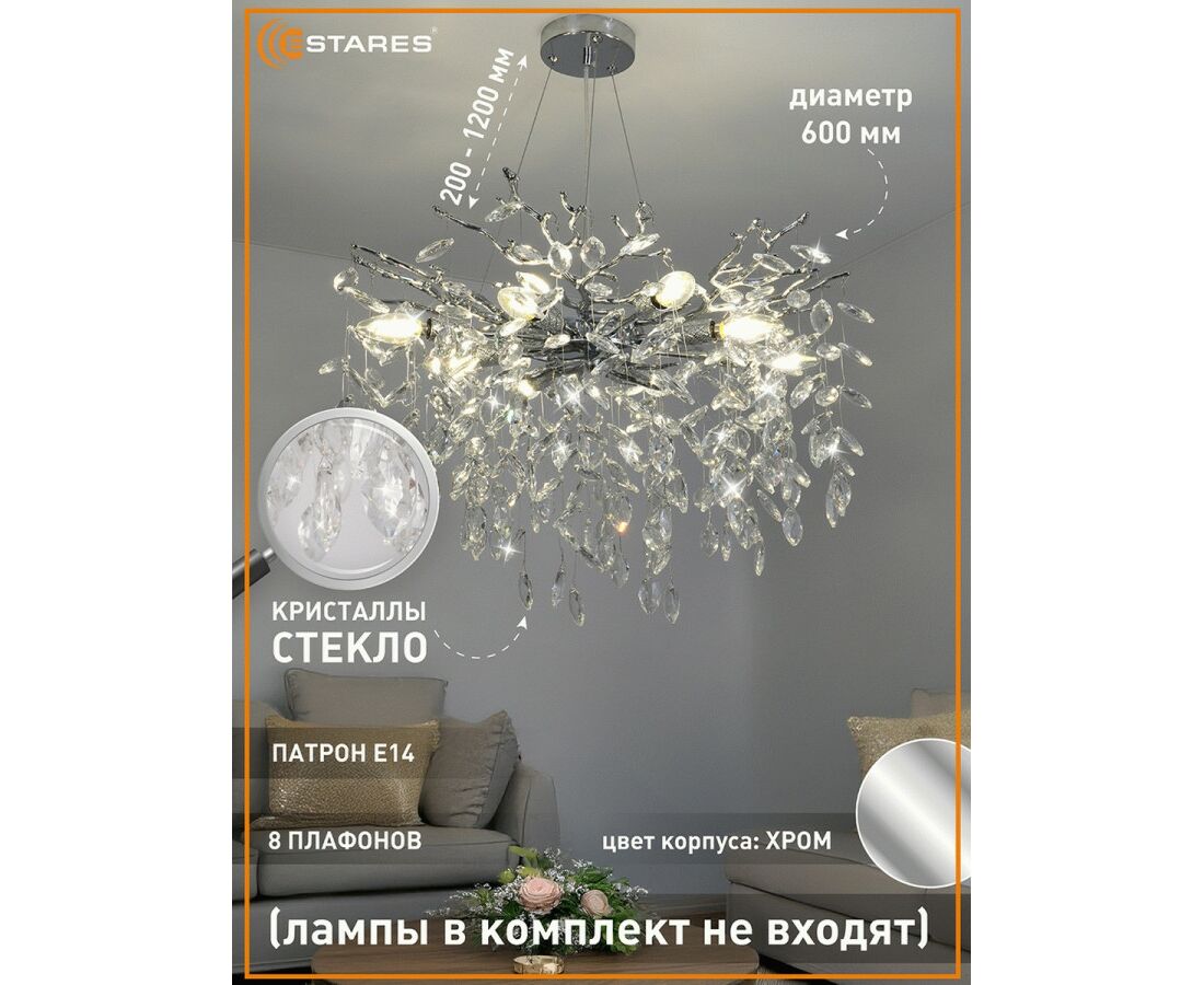 Estares св-к-люстра ROXANA 55 E14x8 600x1200 хром/кристаллы БЕЗ пульта IP20 @