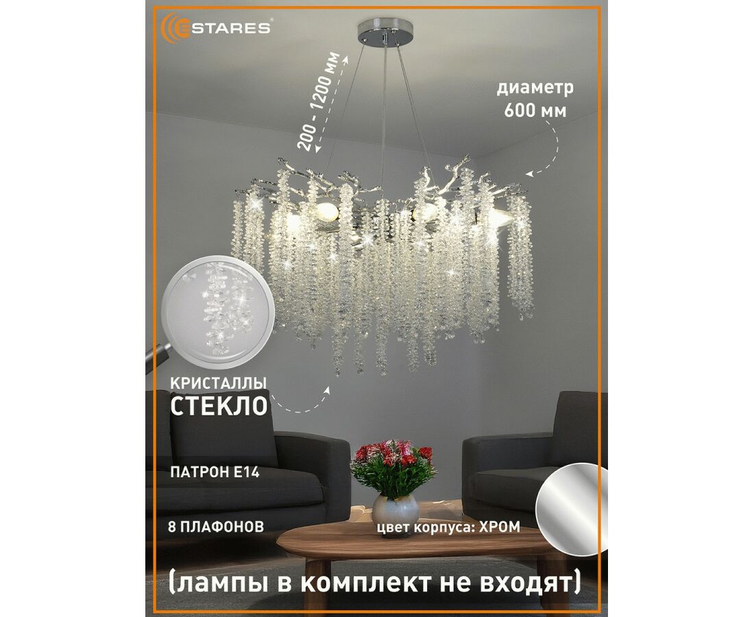Estares св-к-люстра ROXANA 65 E14x8 600x1200 хром/кристаллы БЕЗ пульта IP20 @