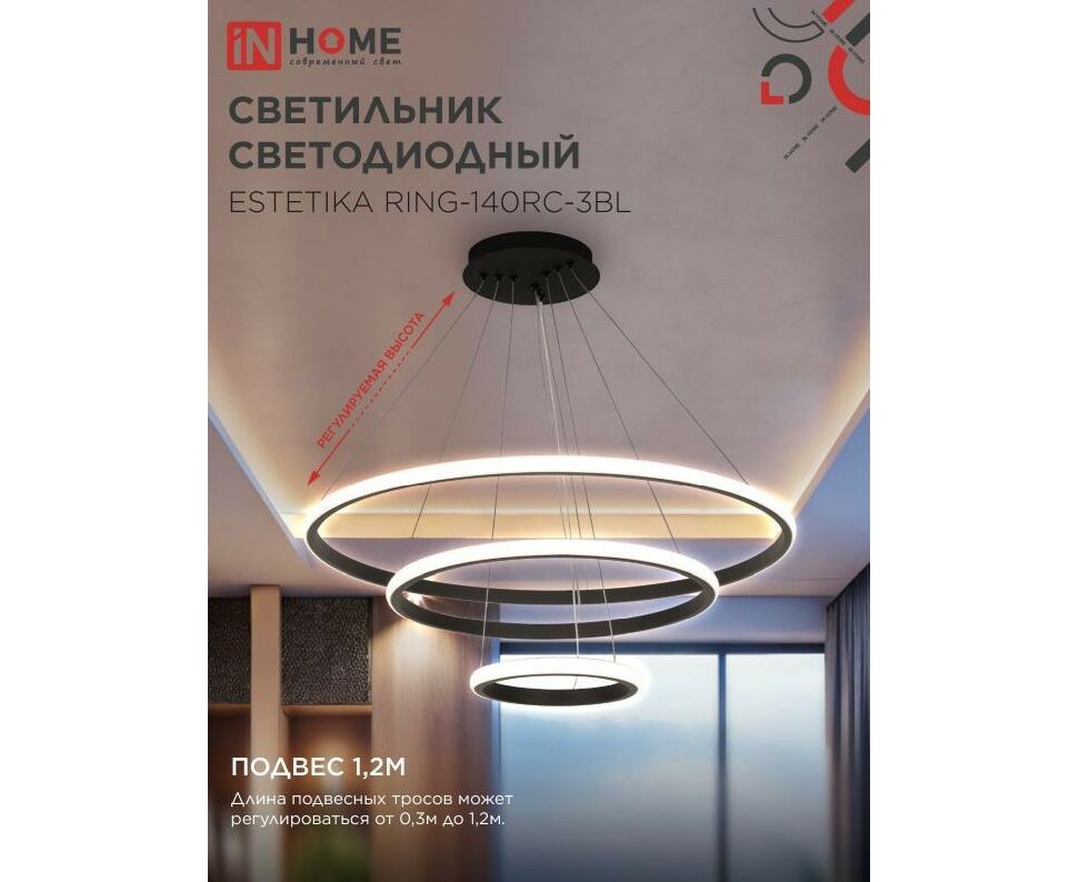 ASD/InHome св-к св/д люстра упр. ESTETIKA RING 140W(8400lm) 3-4-6K 600х400х200 пульт ДУ черн 2471