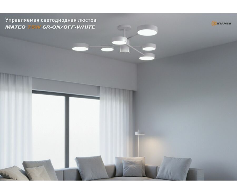 Estares св-к-люстра св/д управл. MATEO 6R 75W (75000Lm) 2K-4K-6K 950х250 пульт ДУ бел/бел IP20 #