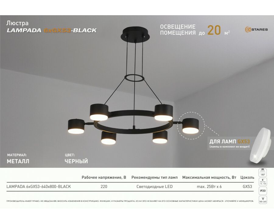 Estares св-к-люстра LAMPADA 6xGX53 640x800 белая БЕЗ пульта IP20 #