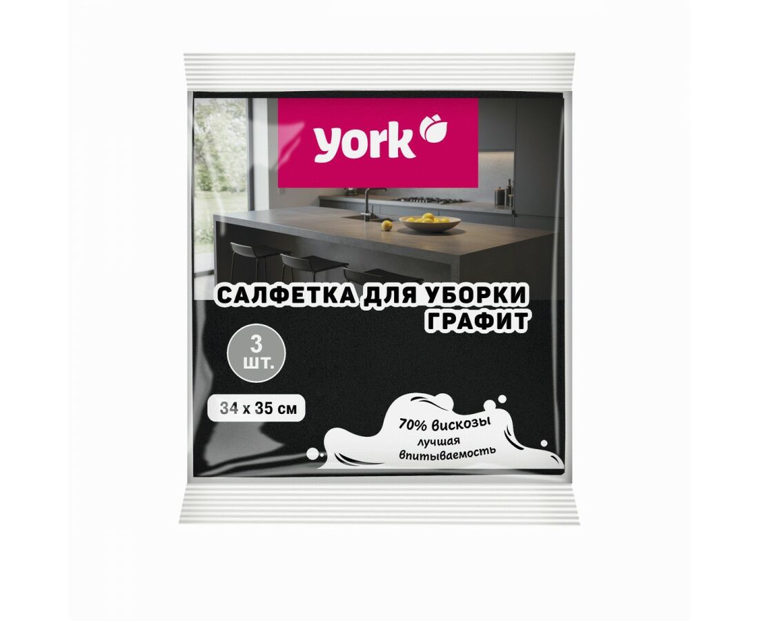 Салфетки вискозные(70%)34*35см универсальные,3шт/уп,Графит,020980/ YORK