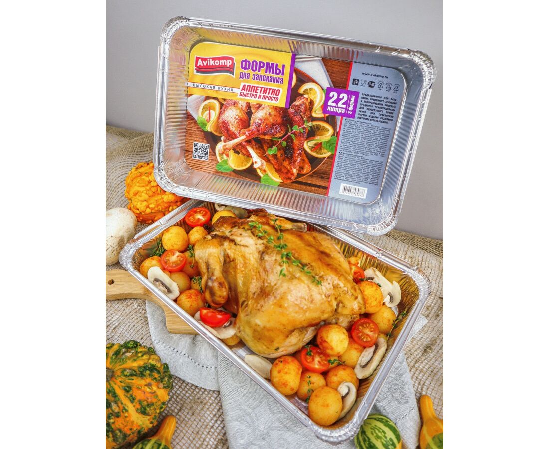 Форма д/выпечки однор прямоуг 2200мл 31,3*21,3*4,5см 3шт/уп (цена за уп) алюм фольга 4876 AVIKOMP