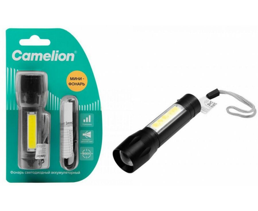 Camelion фонарь ручной LED29360 (акк.3.7V) 3W(100lm) до 250м 6K, 3реж. ZOOM пластик, USB, BL