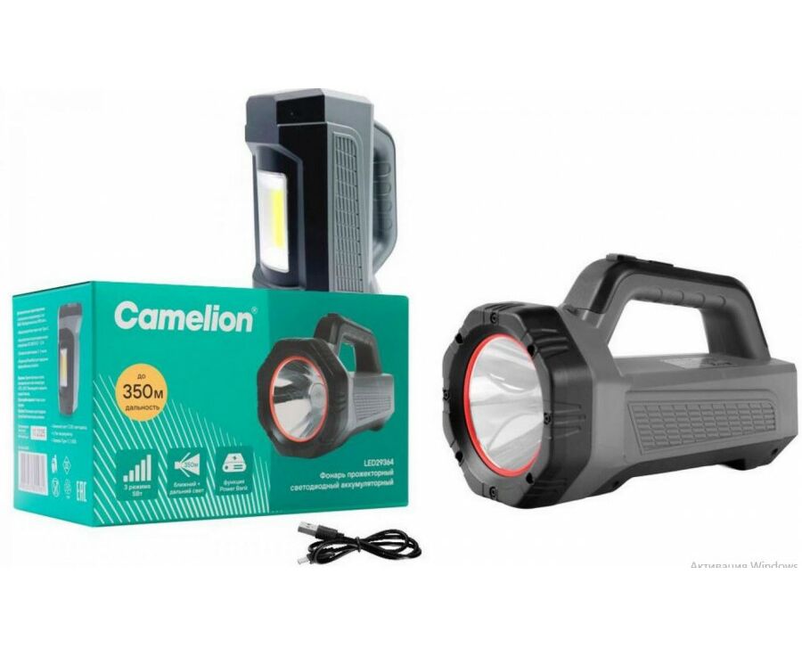 Camelion фонарь-прожектор LED29364 (акк.4V 2.4Ah) LED+COB 5W(350lm) 3реж, PowerBank, пластик, USB