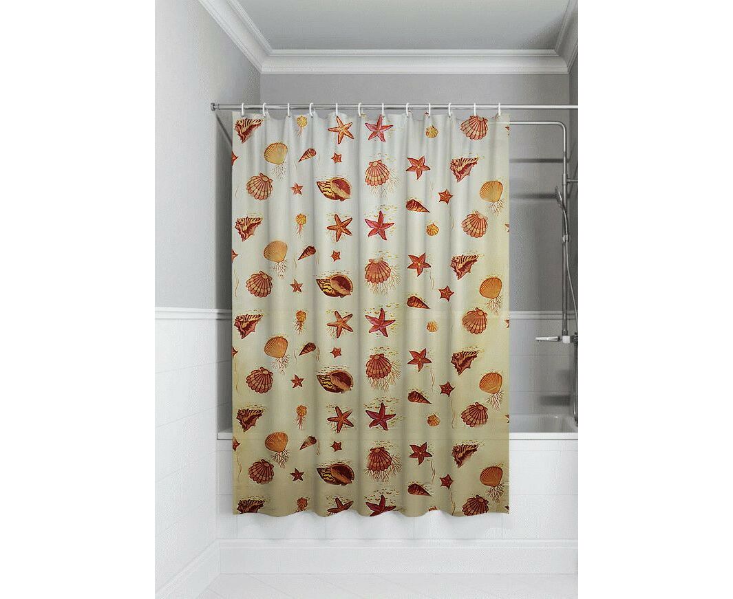 Штора для ванной п/этилен 180*180,40мкм,Ракушки,10 колец,MPU5293/ Умничка