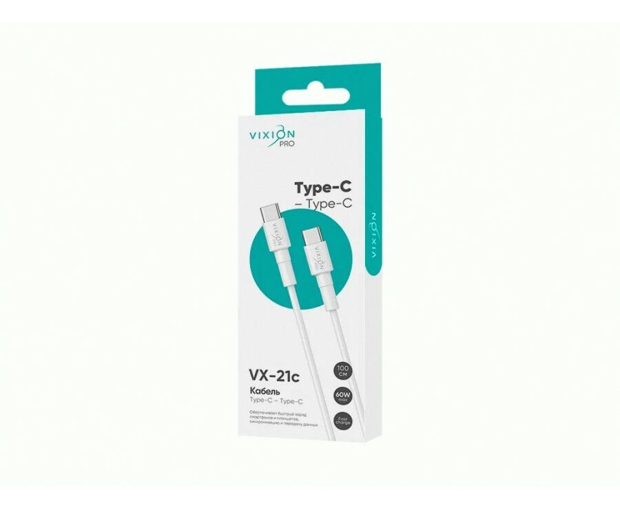 Кабель Type-C VIXION PRO (VX-21c) Type-C 60W , 1м, белый