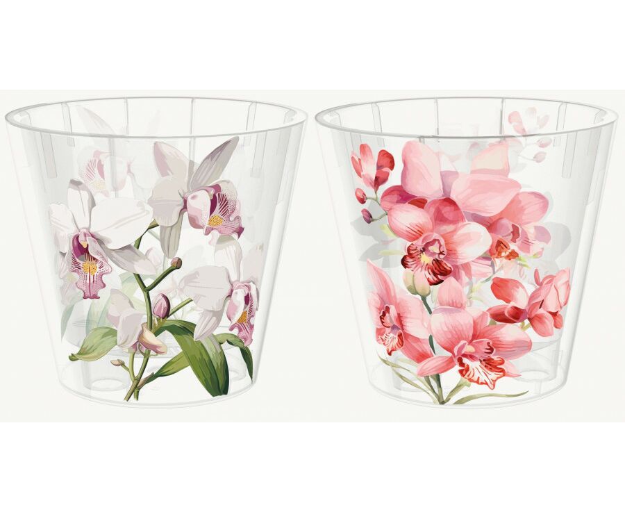 Горшок для орхидей 1,6л,d=16cм,дрен вставка,прозрачный,декор микс,223605701/00/ Homver