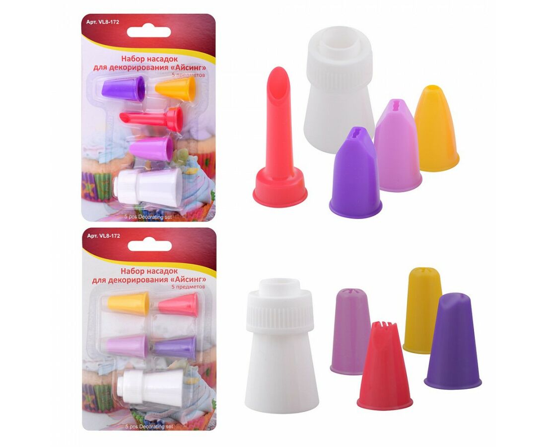 Декоратор д/крема с 5 насадками 2 дизайна (кратность 3!!!) пластик VL8-172 Мультидом