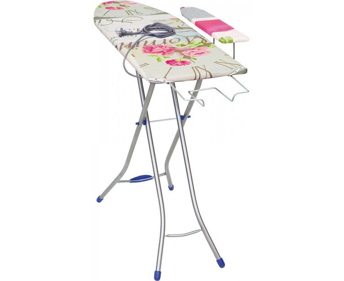 Гладильная доска с рабочей поверхностью из ДСП, чехлом из хлопка и выдвижным подутюжником. Габаритные размеры: