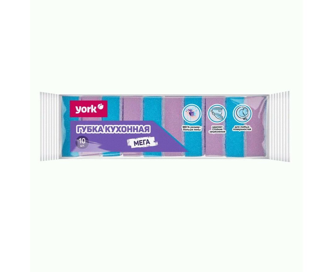 Губки для посуды поролон/абразив,100*70*35мм,Мега,10шт,030370/ YORK